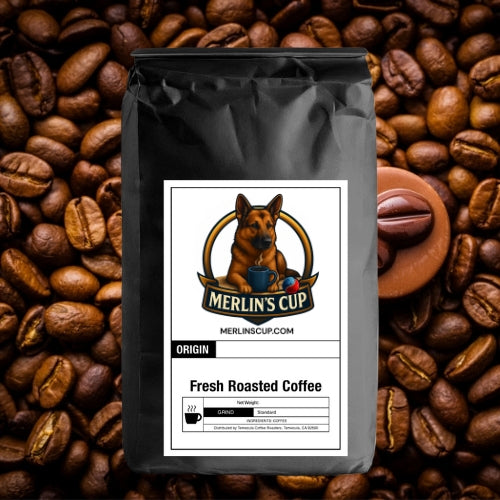 Merlin’s Cup is roasted and shipped fresh from the USA (Chicago or California). Temecula Coffee Roasters in California sources beans from premium regions including Papua New Guinea, Honduras, Peru, Ethiopia, Nicaragua, Mexico, Brazil, Tanzania, Guatemala, Costa Rica, and Colombia.